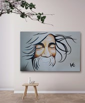 "Tijdens jouw indrukwekkende expositie werden we geraakt door Peaceful John en zijn broer. Door de rust en finesse die beide werken uitstralen, moesten ze wel met ons mee. Jouw eigenheid spat van het doek. Wij gaan er volop van genieten. Dank je wel!"